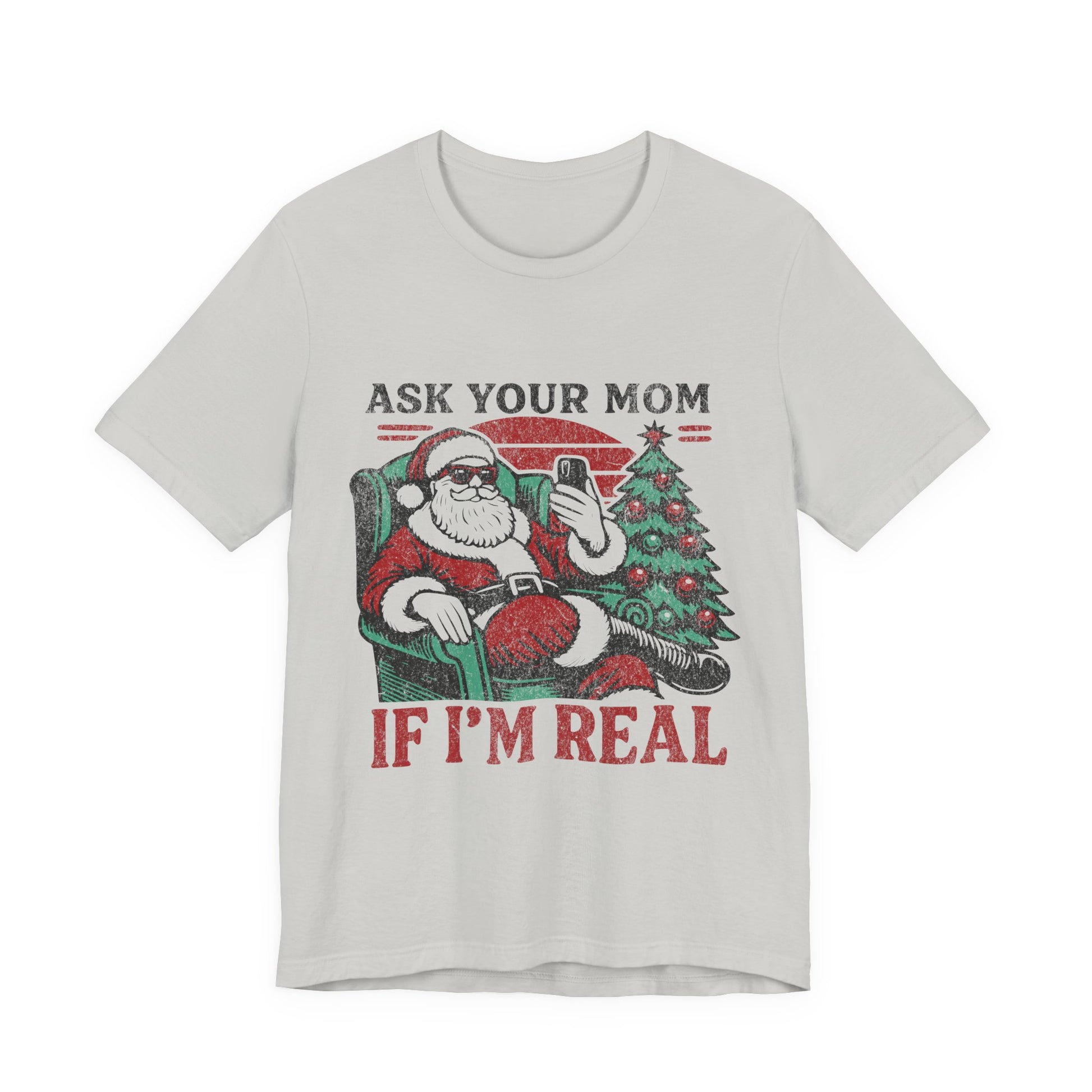 ASK YOUR MOM UNISEX SHORT SLEEVE TEE - SANTA CLAUS SHIRT - CHRISTMAS FUN SHIRT